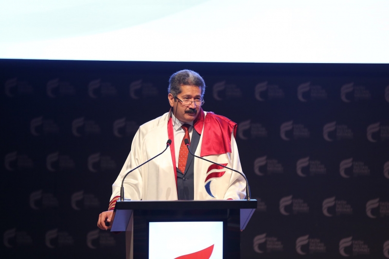 “Bu on yıl hedefinde dinamik, heyecan ve halecanlı olmalıyız. Yani kalbimiz çarpmalı. Kalbi çarpmayanın gönlü de çarpmaz. Aşk aslında bir gönül çarpıntısıdır. Kalp çarpıntısı ise aşığın şanındandır. Bu aşkın akademik dünyadaki adı bilimsel çalışmadır. Bir akademisyen ve bir akademik kurum bilimsel çalışmalarıyla yetkinliğini pekiştirip dışa vurur. Etkin akademik kimlik ancak bununla tezahür eder. 2019-2020 Akademik Yılı bizim için bu hassasiyetler ile başlayan bir yıl olmalıdır. Onuncu yılımızı bu hassasiyetlerle zenginleştirmek için bugün yola çıkıyoruz.”